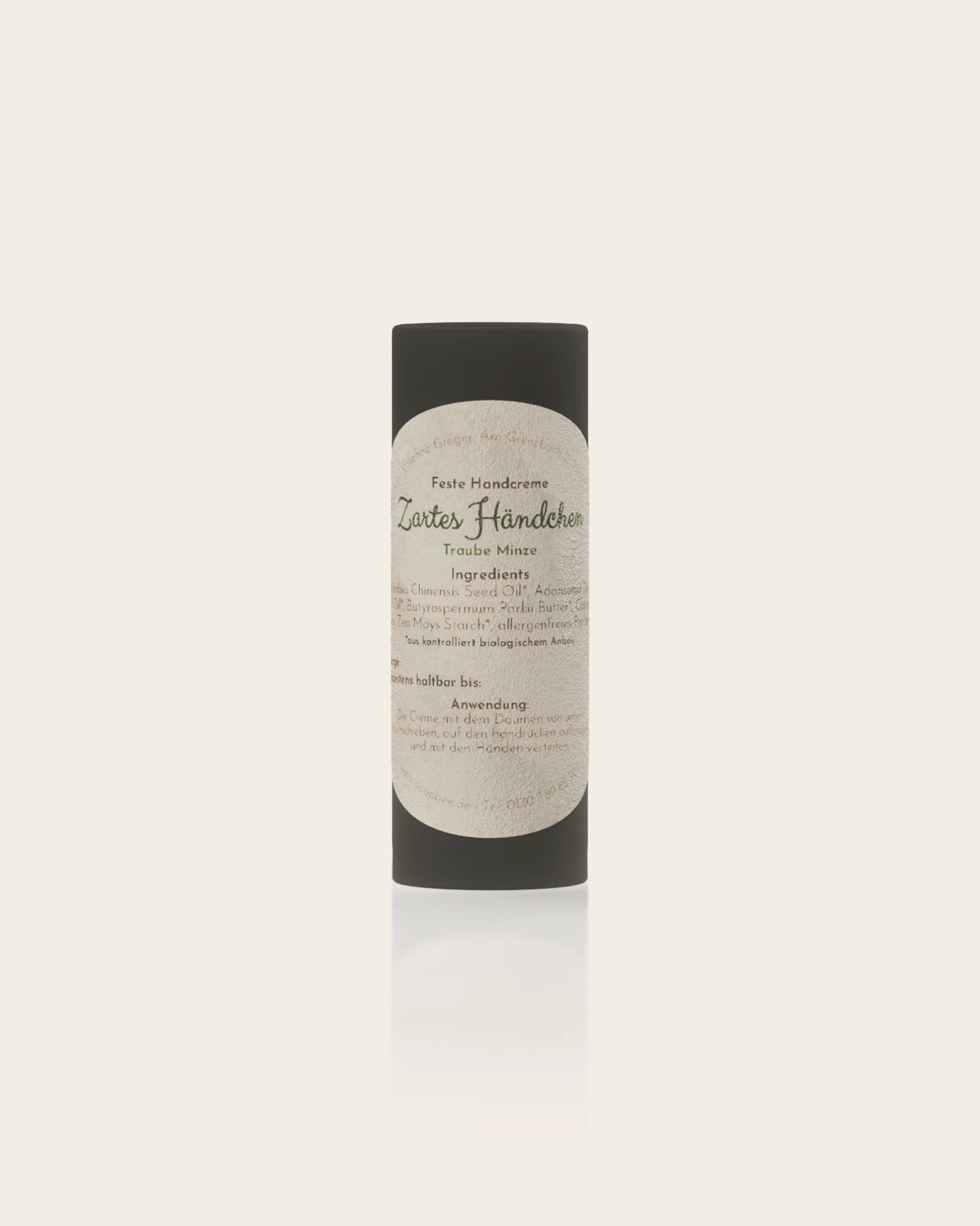 Anwendung: Die Handcreme mit dem Boden nach oben schieben. Anschließend über den Handrücken reiben und mit den Händen verteilen.